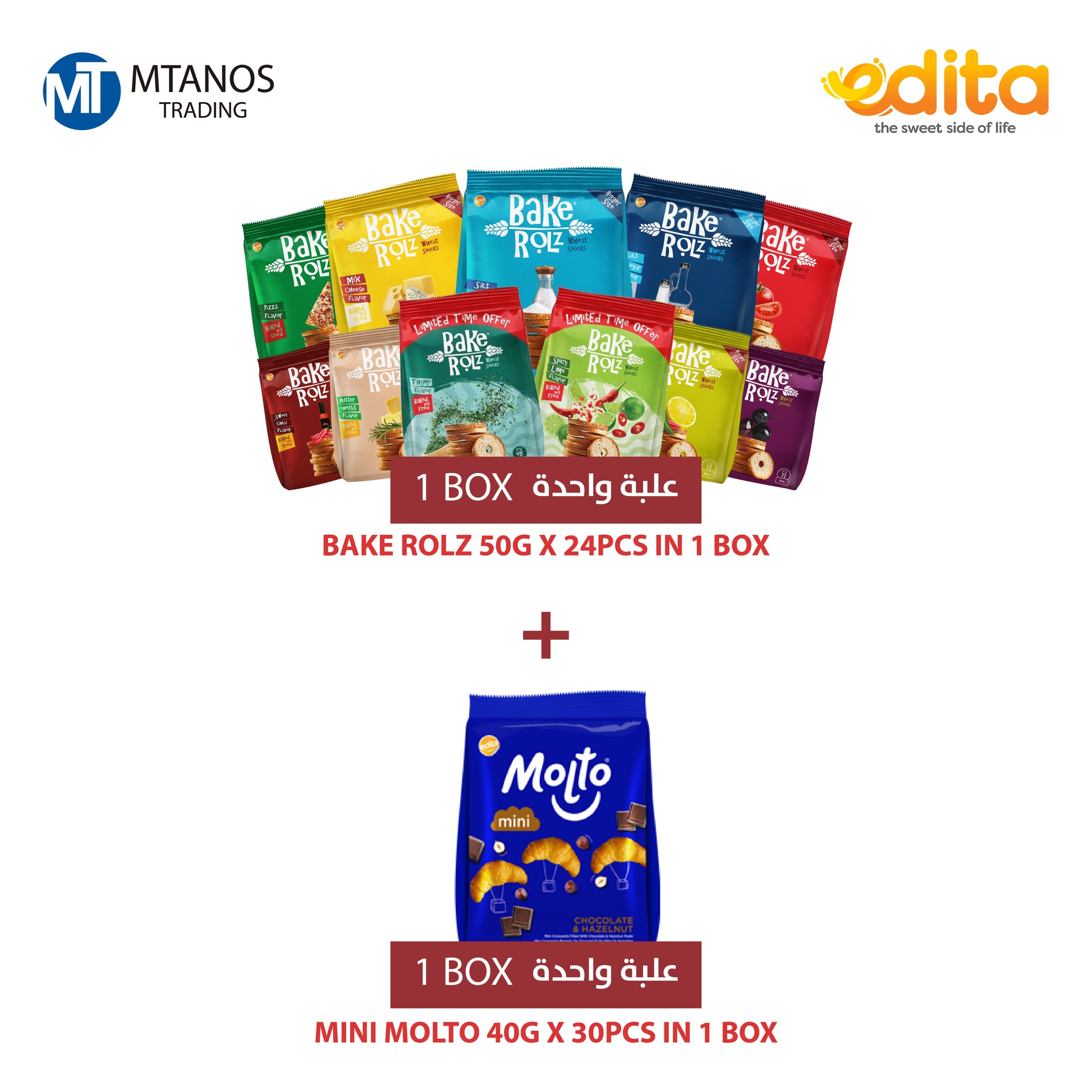 1 box Bake Rolz (50g x 24 pcs in 1 box) + 1 box Mini Molto (40g x 30 pcs in 1 box)
