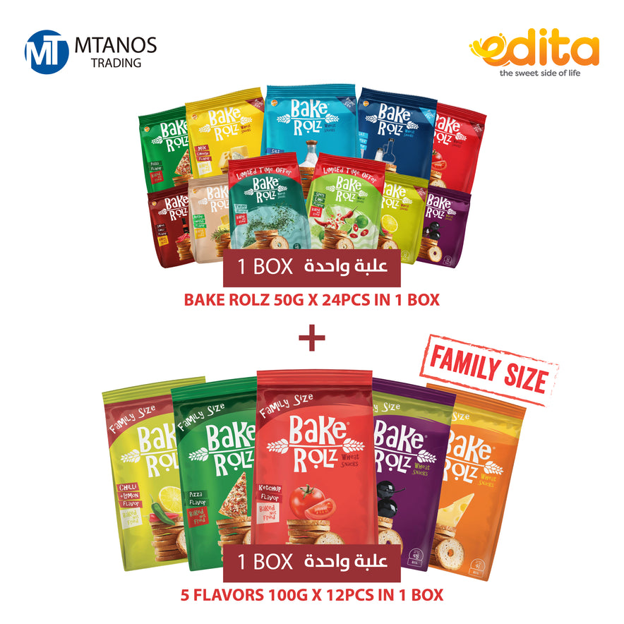 1 box Bake Rolz (50g x 24 pcs in 1 box) + 1 box Bake Rolz Family Size (100g x 12 pcs in 1 box)