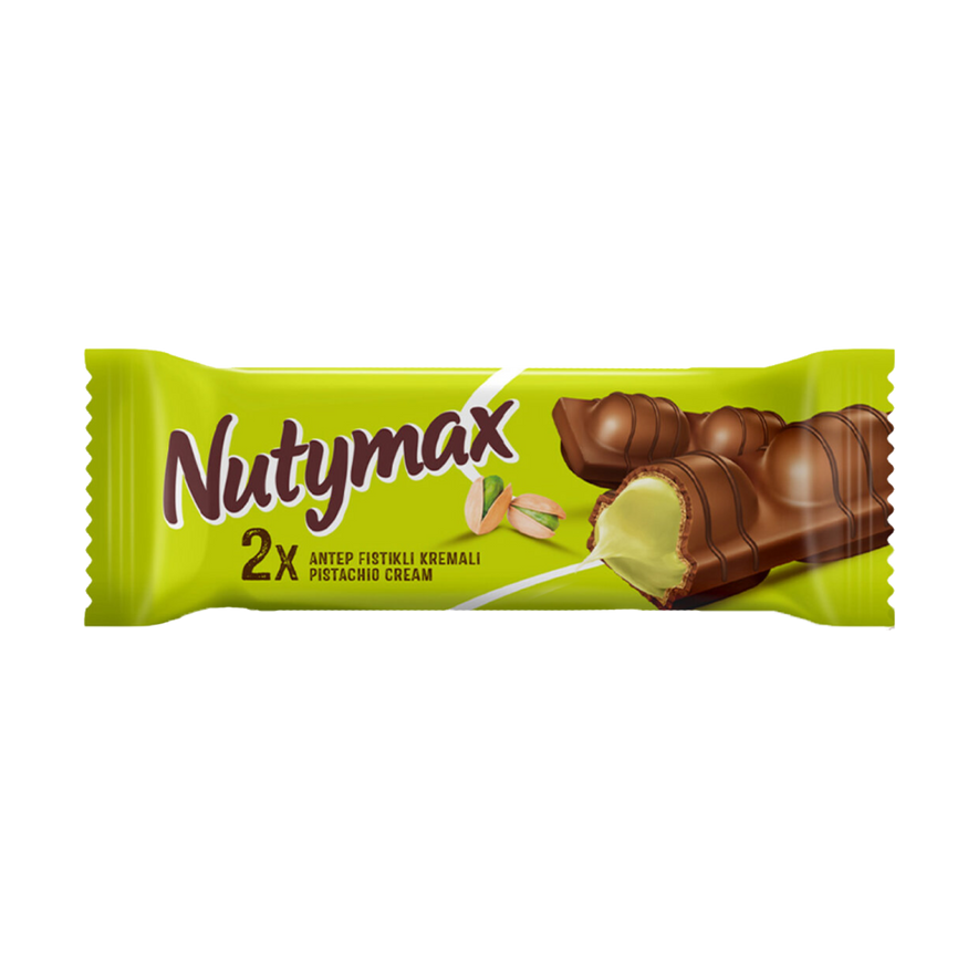 Şölen Nutymax with Pistachios pushes the limits of flavor with more chocolate and more cream. With its crispy wafer and abundant cream filling. Creamy chocolate bar filled with pistachio cream. 44g x 16pcs per box. Made in Turkey.
