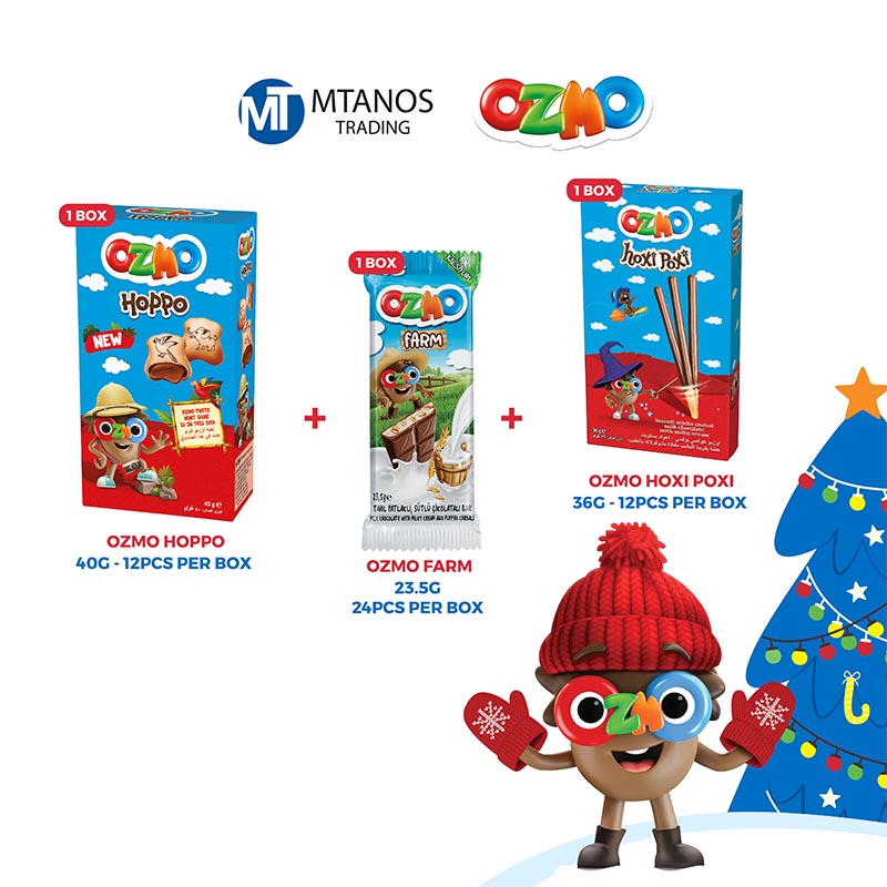 1 box Ozmo Hoxi Poxi (36g x 12pcs per box) + 1 box Ozmo Hoppo (40g x 12pcs per box) + 1 box Ozmo Farm (23.5g x 24 pcs per box)
