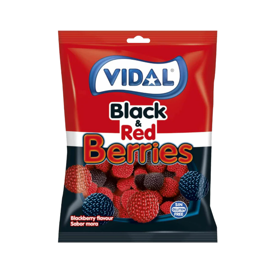 Black and raspberry flavored mini jellies covered in sweet sugar balls. 100g. Made in Spain